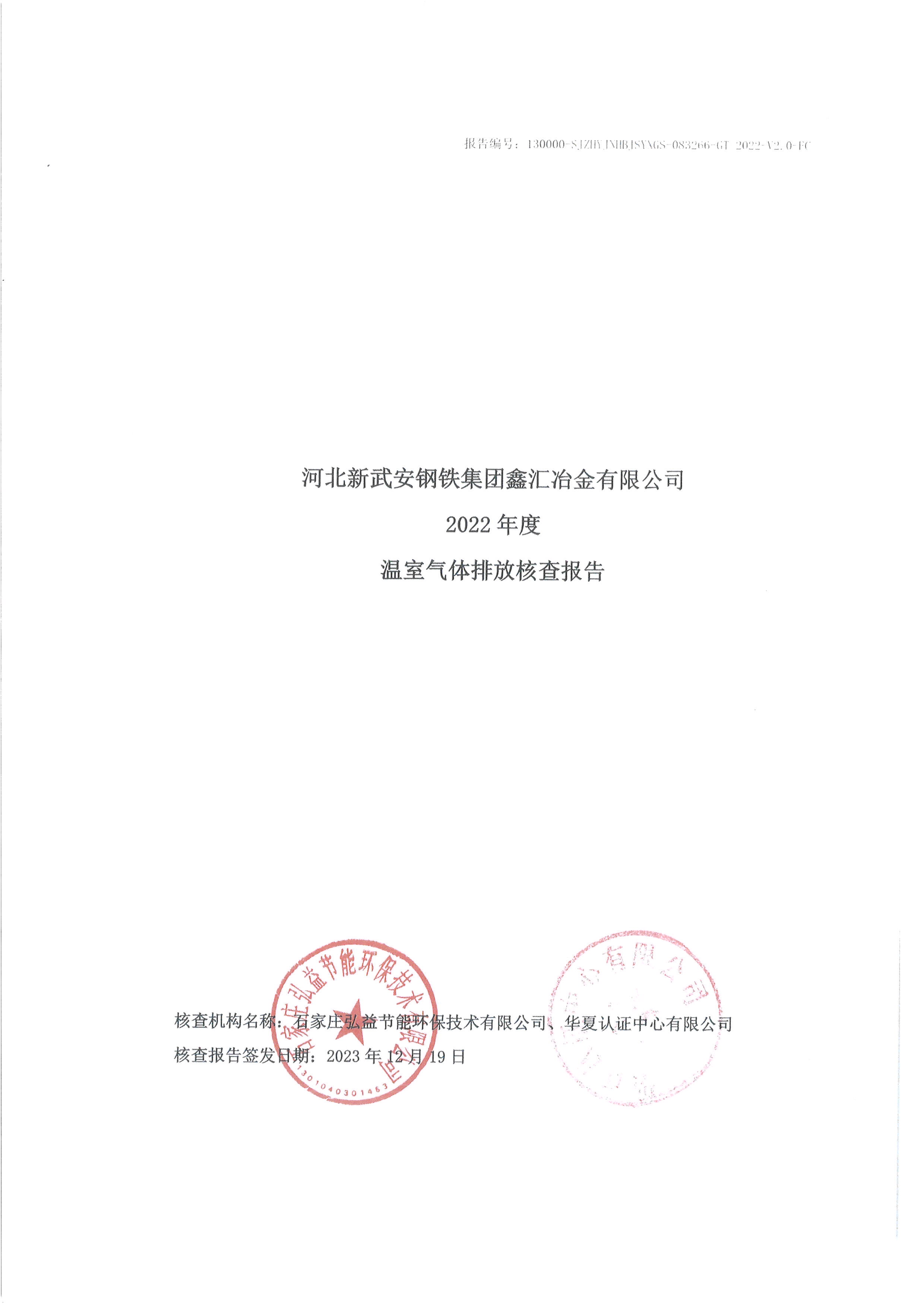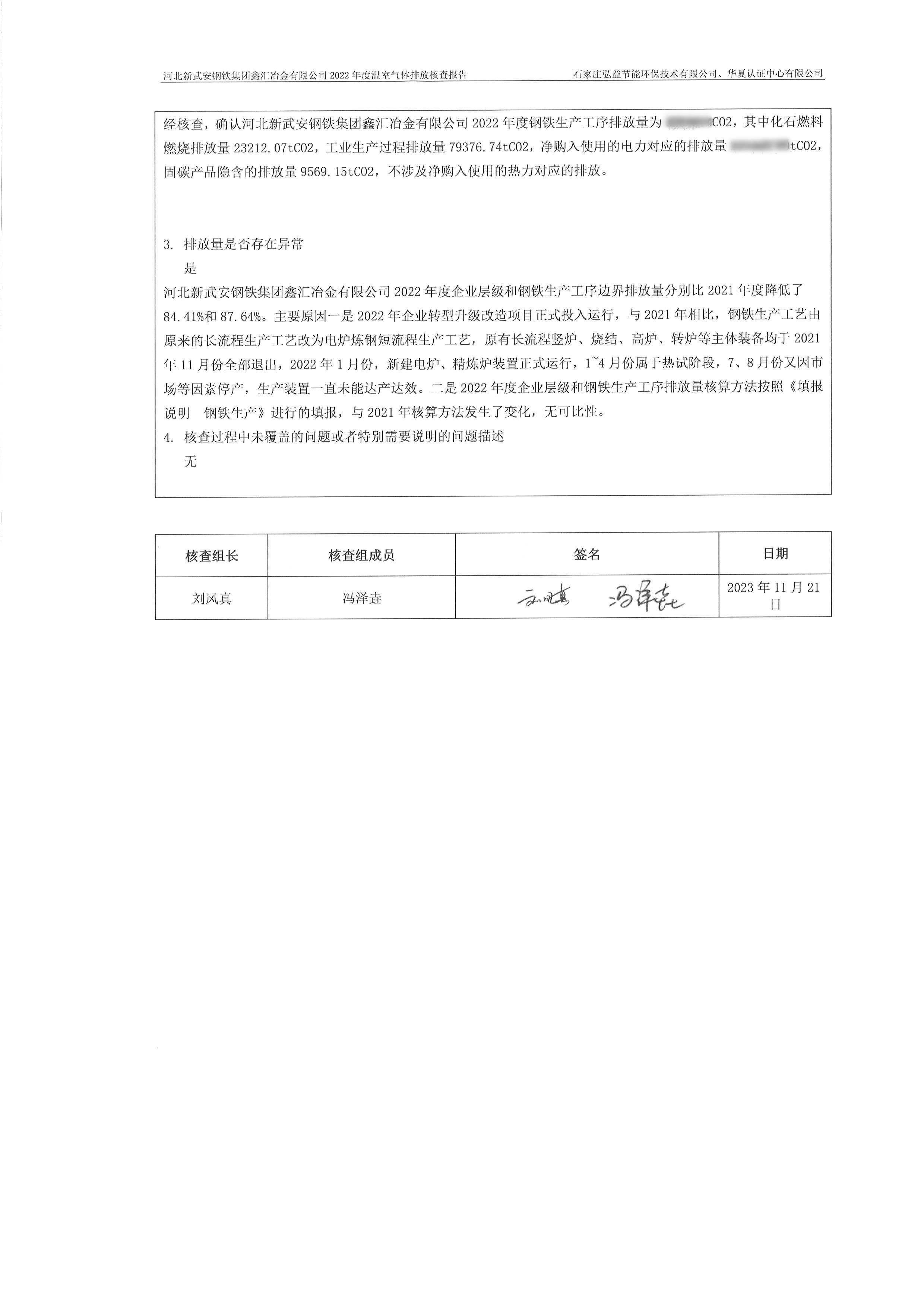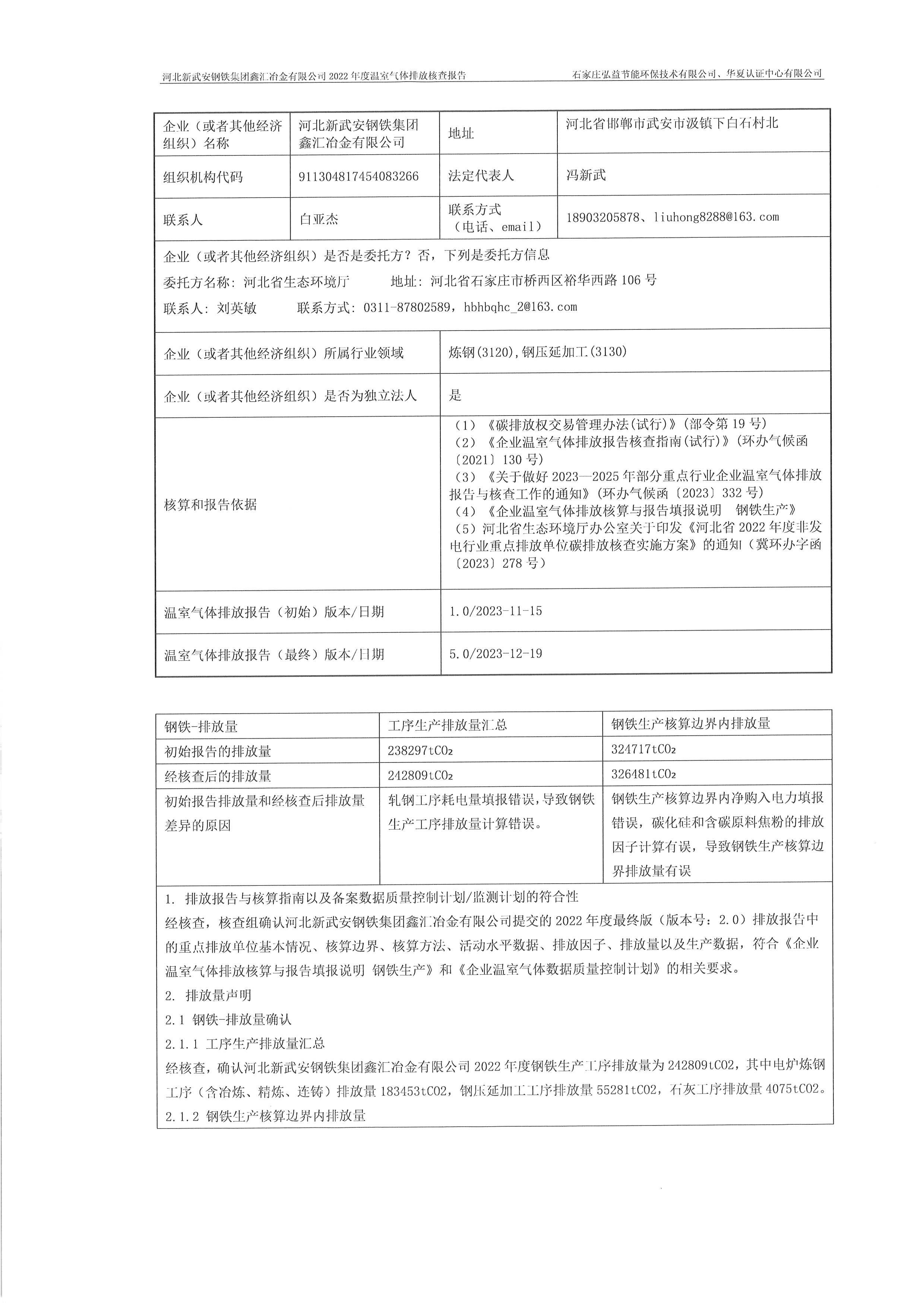 2022年河北新武安鋼鐵集團(tuán)鑫匯冶金有限公司碳排放核查報(bào)告