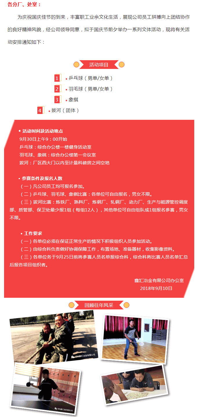 鑫匯公司關(guān)于舉辦國(guó)慶節(jié)文體活動(dòng)的通知